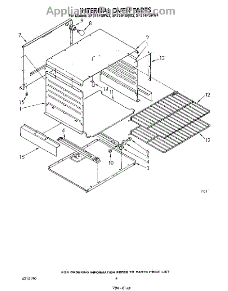 Parts for Whirlpool SF314PSRW3: 03 - Internal Oven Parts