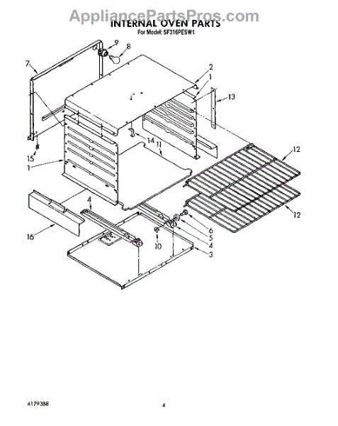 Parts for Whirlpool SF316PESW1: 03 - Internal Oven Parts