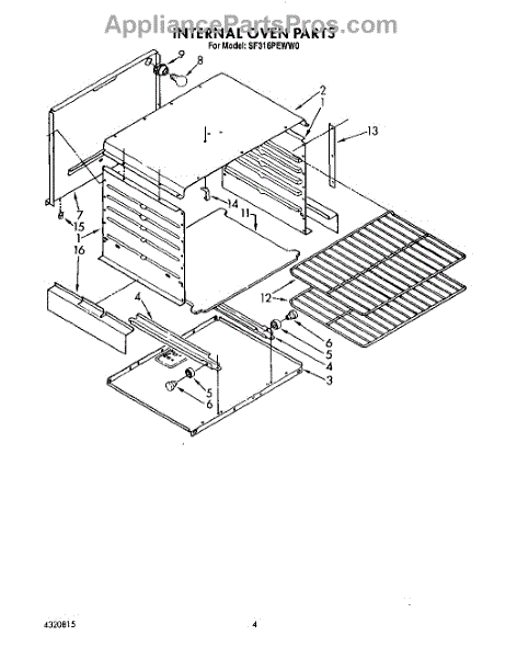 Parts for Whirlpool SF316PEWN0: 03 - Internal Oven Parts