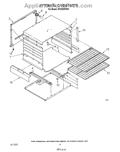 Parts for Whirlpool SF3300ERW4: 03 - Internal Oven Parts