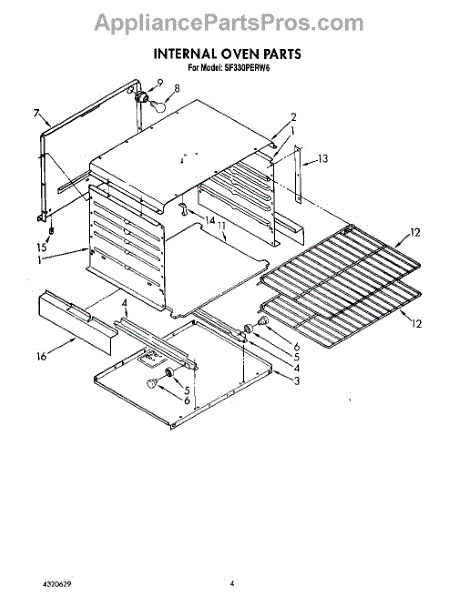 Parts for Whirlpool SF330PERN6: 03 - Internal Oven Parts