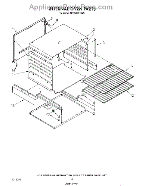 Parts for Whirlpool SF330PERW5: 03 - Internal Oven Parts
