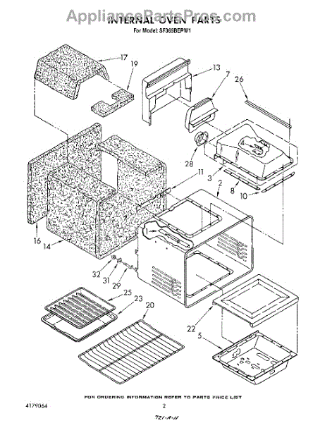 Parts for Whirlpool SF365BEPW1: 02 - Internal Oven Parts