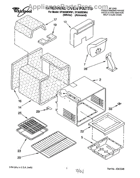 Parts for Whirlpool SF365BEWW1: 01 - Internal Oven Parts