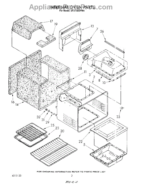 Parts for Whirlpool SF375BEPW4: 02 - Internal Oven Parts