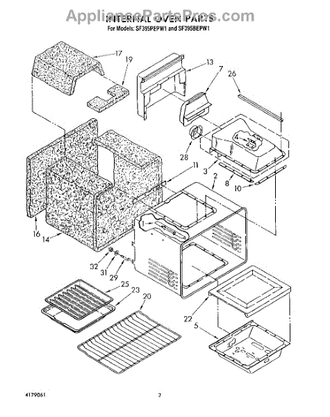 Parts for Whirlpool SF395BEPW1: 02 - Internal Oven Parts