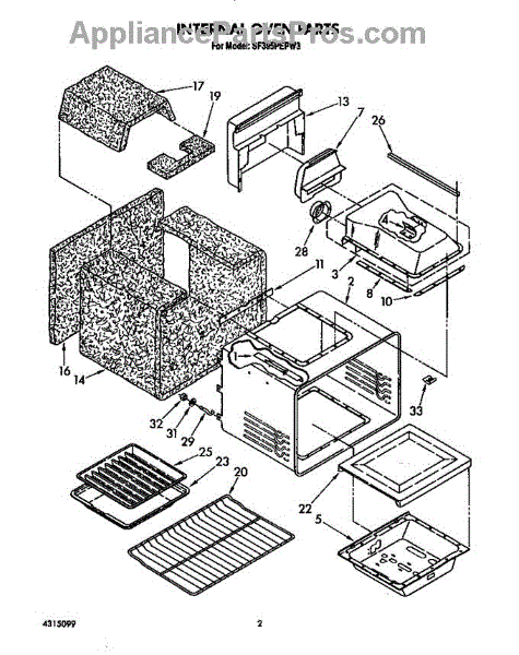 Parts for Whirlpool SF395PEPW3: Internal Oven Parts