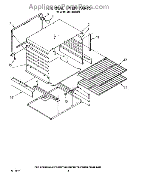 Parts for Whirlpool SF5140ERW3: 04 - Internal Oven Parts