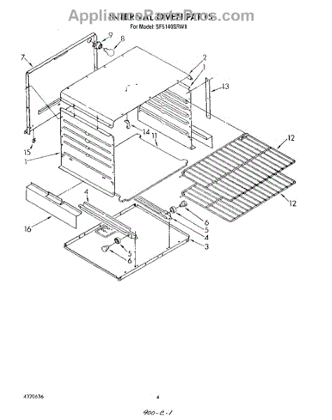 Parts for Whirlpool SF5140SRW8: 04 - Internal Oven Parts