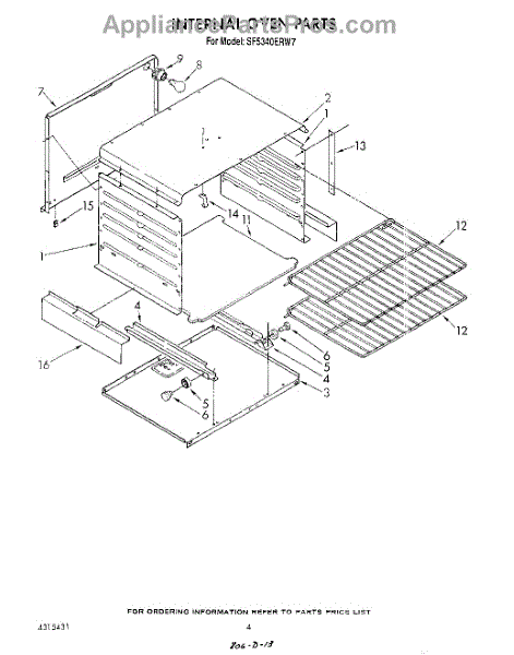 Parts for Whirlpool SF5340ERW7: 04 - Internal Oven Parts