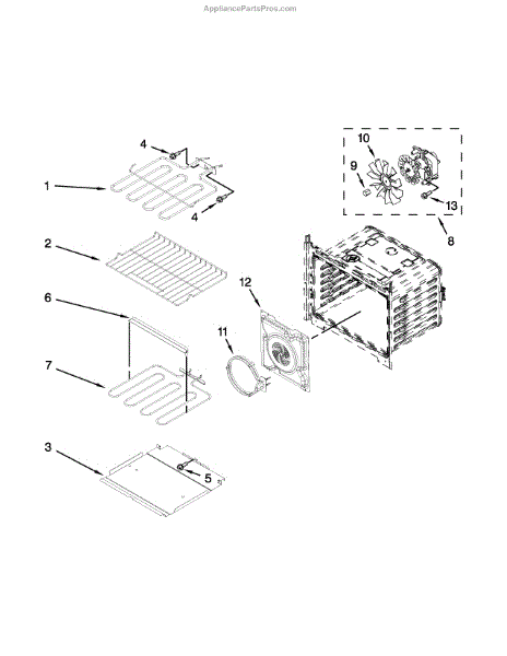This convection baffle directs hot air from the fan for more even heat distribution in convection ovens. It helps maintain consistent cooking temperatures and prevents uneven baking or roasting caused by disrupted airflow. What it does