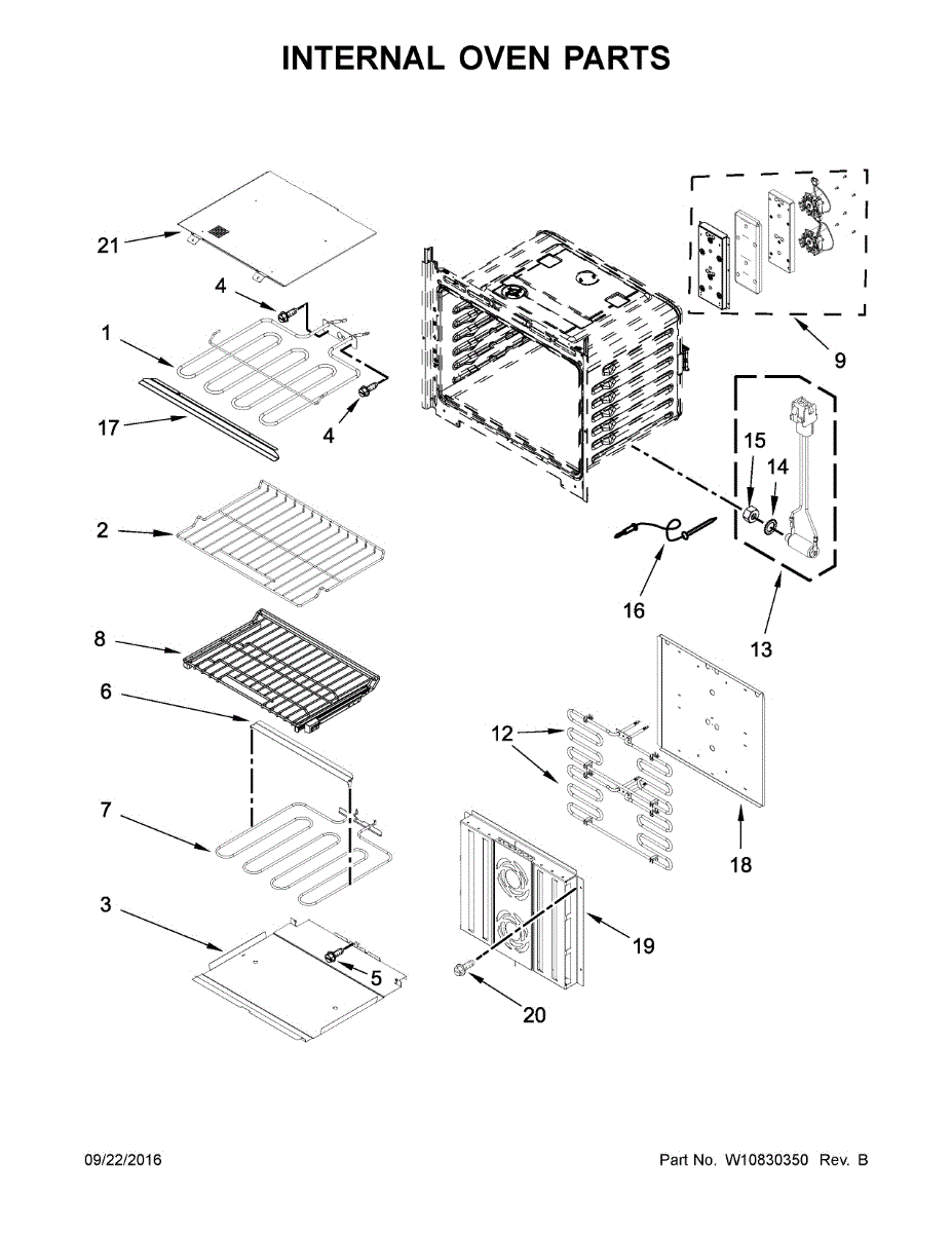 Heat shield insulates internal wall oven components from high cooking temperatures. Replace if cracked, charred, or damaged from heat exposure.
