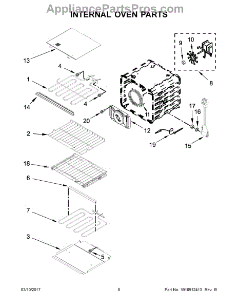 This convection baffle directs hot airflow inside the oven for more even cooking and protects the convection fan assembly. Replaces a damaged or missing baffle to restore proper air distribution and reduce rattling. What it does