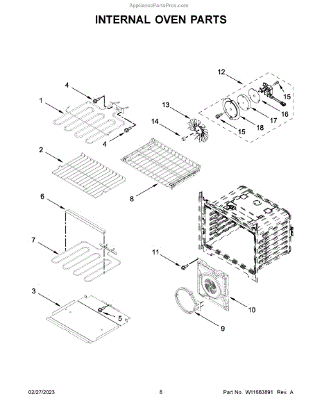 This convection baffle directs hot air from the fan for more even heat distribution in convection ovens. It helps maintain consistent cooking temperatures and prevents uneven baking or roasting caused by disrupted airflow. What it does