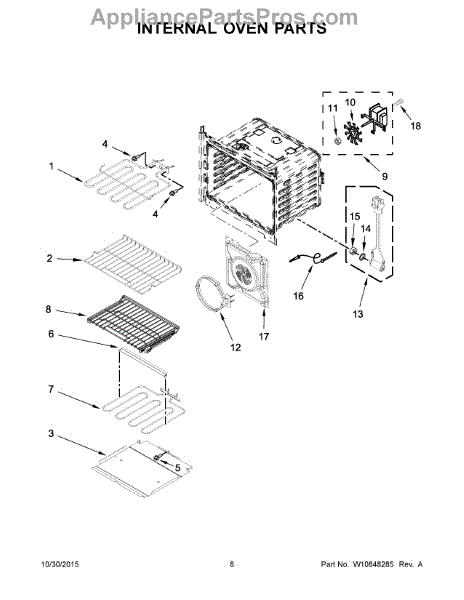This convection baffle directs hot air from the fan for more even heat distribution in convection ovens. It helps maintain consistent cooking temperatures and prevents uneven baking or roasting caused by disrupted airflow. What it does