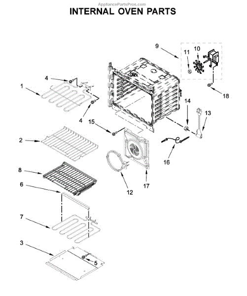 This convection baffle directs hot air from the fan for more even heat distribution in convection ovens. It helps maintain consistent cooking temperatures and prevents uneven baking or roasting caused by disrupted airflow. What it does