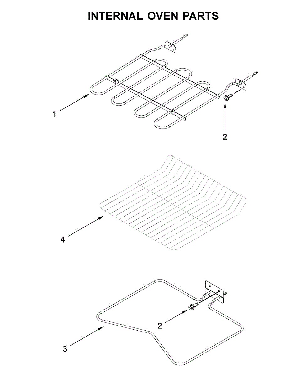 This bake element installs at the bottom of the oven cavity to provide the primary heat during Bake. Replacing a worn or failed element restores proper preheating and consistent baking performance.