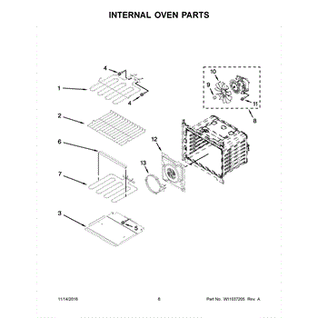 This convection baffle directs hot air from the fan for more even heat distribution in convection ovens. It helps maintain consistent cooking temperatures and prevents uneven baking or roasting caused by disrupted airflow. What it does