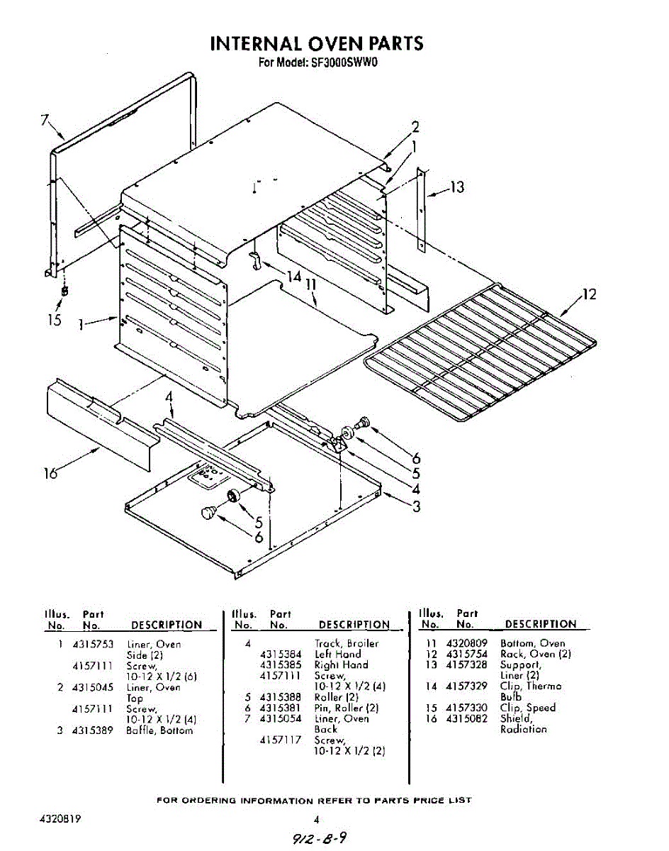 Parts for Whirlpool SF3000SWW0: 04 - Internal Parts