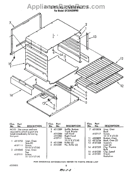 Parts for Whirlpool SF3040SWW0: 08 - Internal Parts