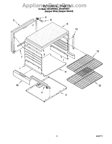 Parts for Whirlpool SF318PEWQ1: 05 - Internal Parts