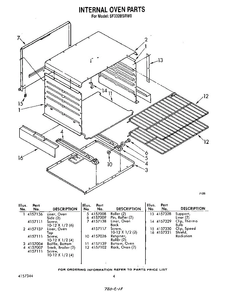 Parts for Whirlpool SF332BSRW0: 04 - Internal Parts