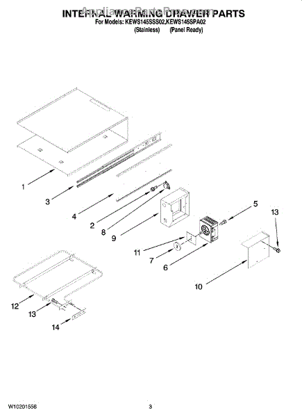 Parts for Kitchenaid KEWS145SPA02: 02 - Internal Warming Drawer Parts