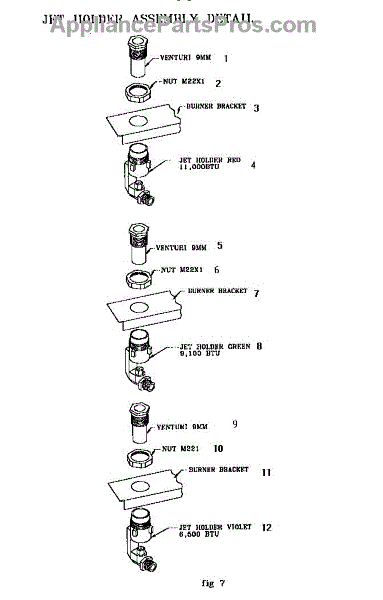 Parts for Thermador RDF30RS / 9707 & UP: Jet Holder Assembly Detail Parts
