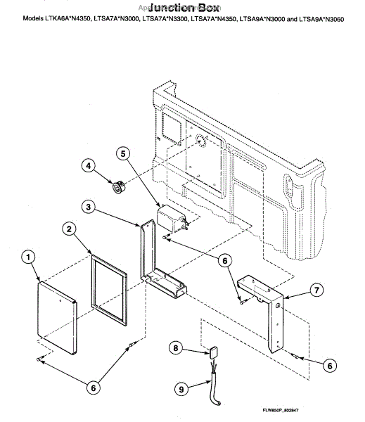 Parts for Speed Queen LTSA9AWN: Junction Box Parts