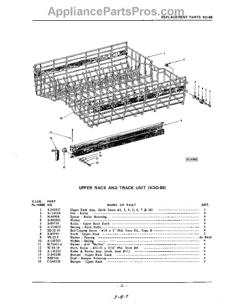 Parts for Kitchenaid KDD68: 21 - Kdd-68 Parts