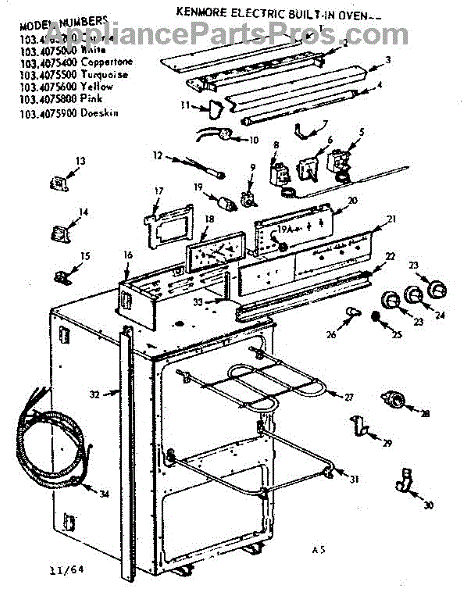 Parts for Kenmore 103.4075800 (1034075800, 103 4075800): Kenmore Electric Built-In Oven Parts