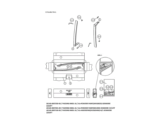 Kenmore 30126-0024500-00 Handle F As (Silver) OEM Part