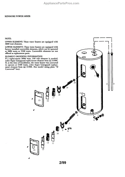 Parts for Kenmore 153.316153 (153316153, 153 316153): Kenmore Power Miser 30 Gal. Short Parts