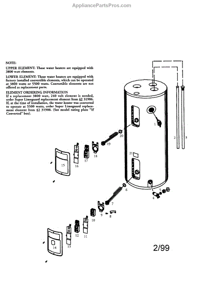 Parts for Kenmore 153.316355 (153316355, 153 316355): Kenmore Power Miser 30 Gal. Parts