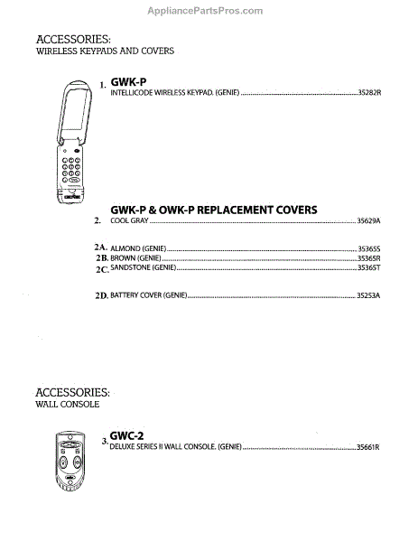 Parts for Genie 36280R: Keypads / Covers / Wall Console Accessories Parts
