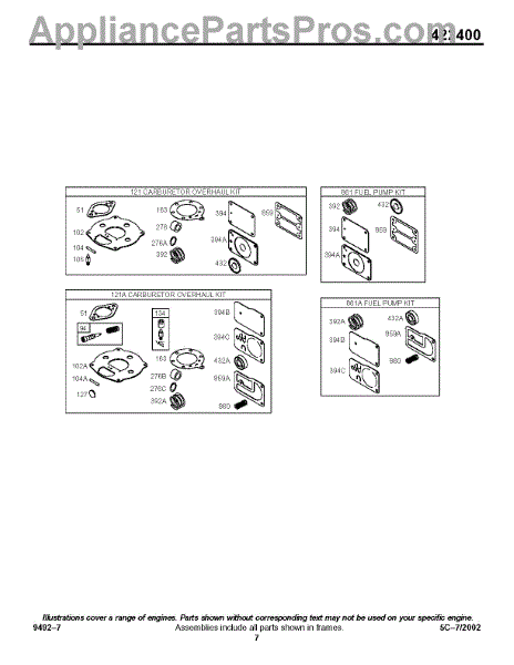 Parts for Briggs & Stratton 422447-4027-01: Kit / Gasket Sets - Carburetor, Kit / Gasket Sets - Fuel Pump Parts