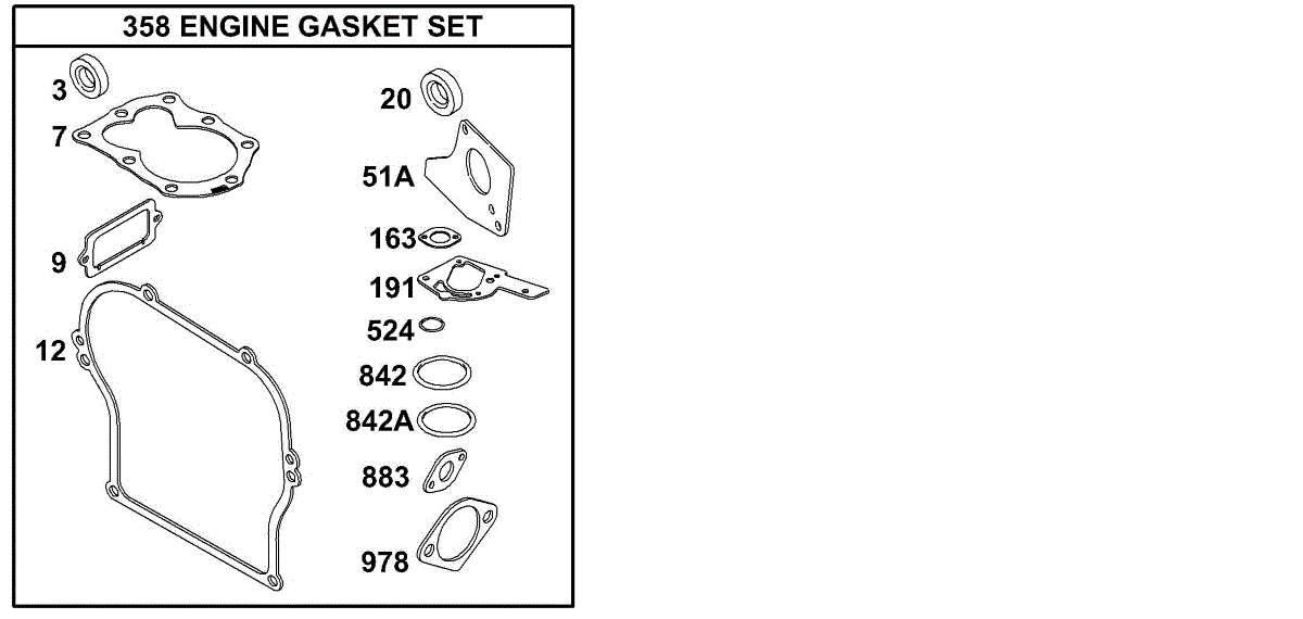 Complete gasket set for small engines. Replace when gaskets become worn or degraded to maintain proper seal and flow control. Verify fit with your model.