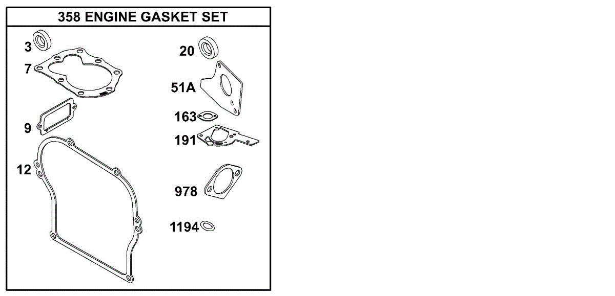 Complete gasket set for small engines. Replace when gaskets become worn or degraded to maintain proper seal and flow control. Verify fit with your model.