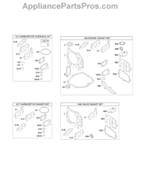 Parts for Briggs & Stratton 12R507-0561-B1: Kits / Gasket Sets Parts