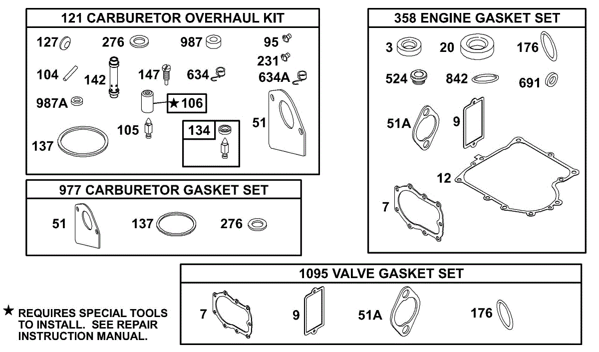 Complete gasket set for small engines in lawn mowers and snowblowers. Replace when rebuilding engine or fixing leaks. Verify fit with your model number.