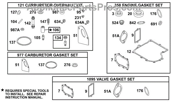 Parts for Briggs & Stratton 288707-0604-A1: Kits / Gasket Sets Parts