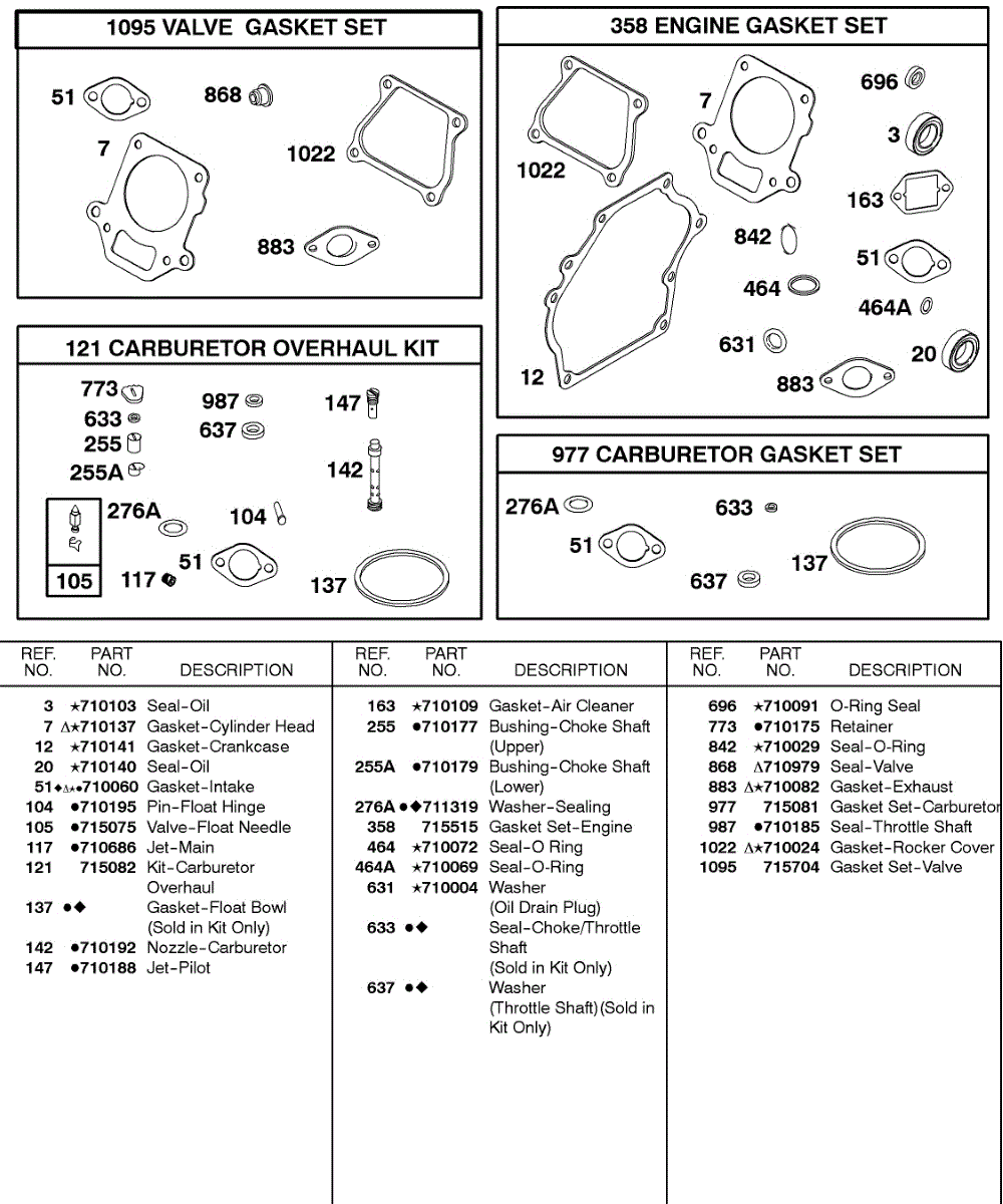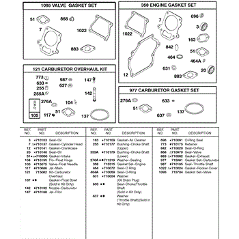 Parts for Briggs & Stratton 085432-0278-B1: Kits / Gaskets-Carburetor, Kits / Gaskets-Engine, Kits / Gaskets-Valve Parts