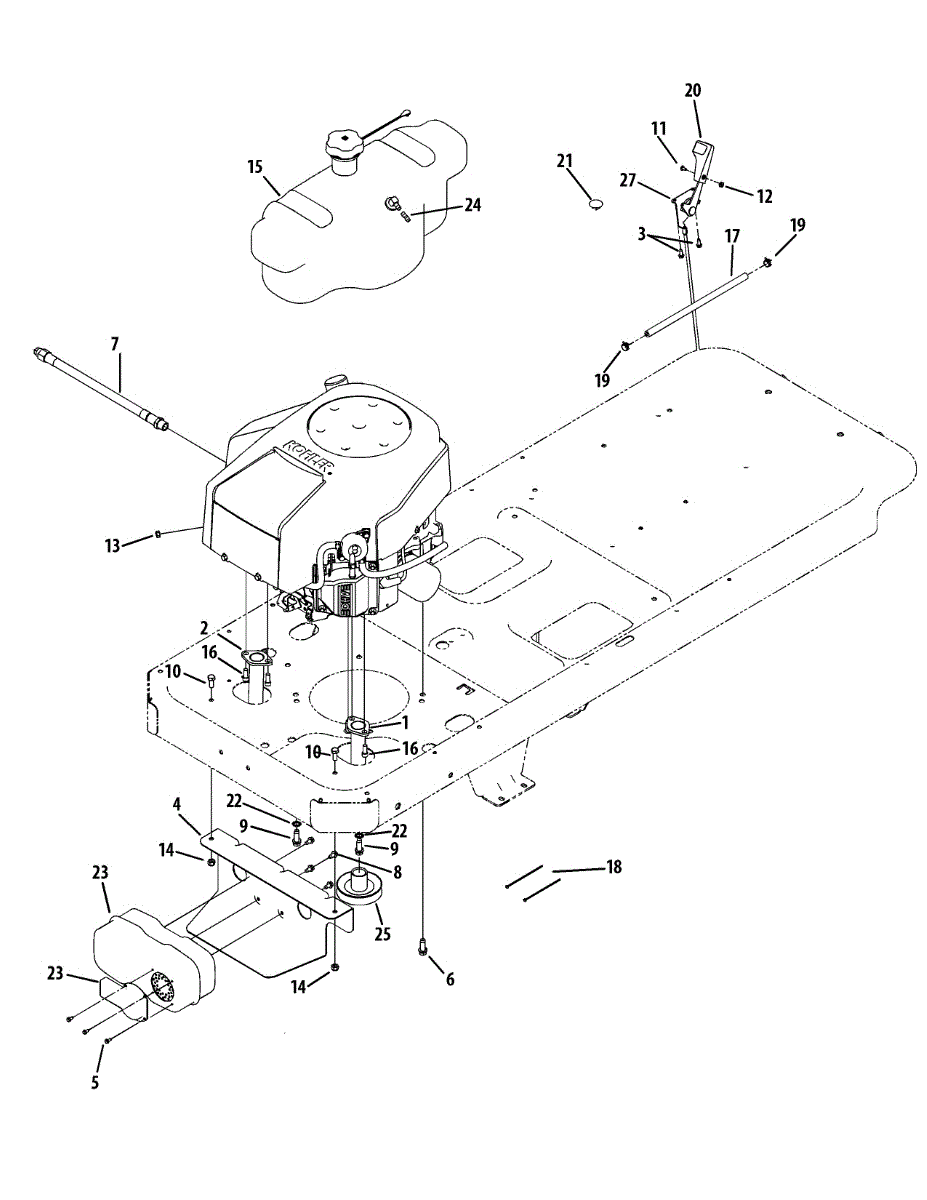 Secures gas tanks, housings, and components on lawn equipment. Replace when stripped, rusted, or loose. Verify thread size and length match your model.