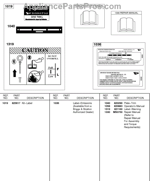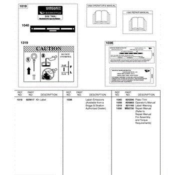 Parts for Briggs & Stratton 433447-0115-01: Label / Emission Kits, Operator's Manual, Repair Manual Parts