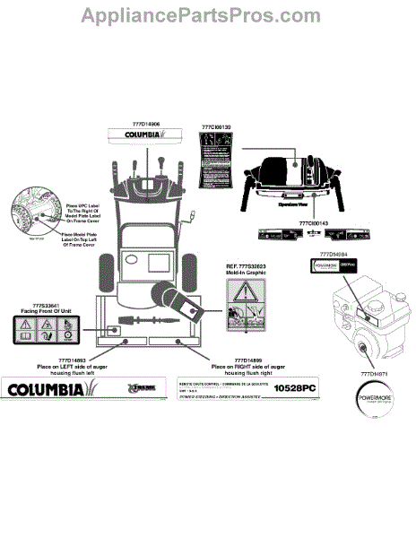 Parts for Columbia 31AH55K489710528PC / 2012: Label Map 10528Pc Parts