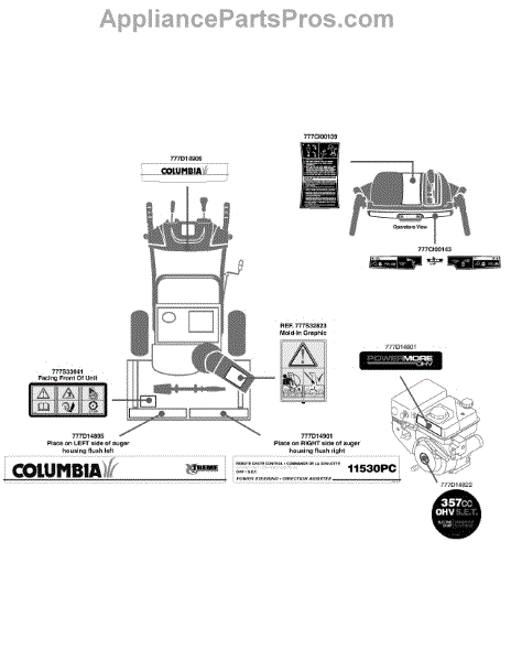 Parts for Columbia 31AH55K5897 / 2010: Label Map 11530Pc Parts