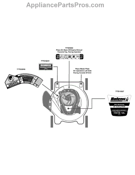 Parts for Bolens 11A-020W765 / 2014: Label Map 11A-020W765 Parts