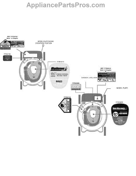 Parts for Bolens 11A-414S265 / 2010: Label Map 11A-414A-S Parts