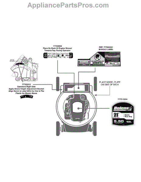 Parts for Bolens 11A-A14A065 / 2011: Label Map 11A-A14a065 Parts