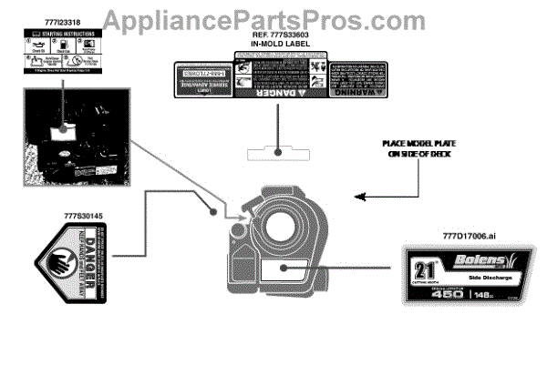 Parts for Bolens 11A-A40M265 / 2012: Label Map 11A-A40m265 Parts